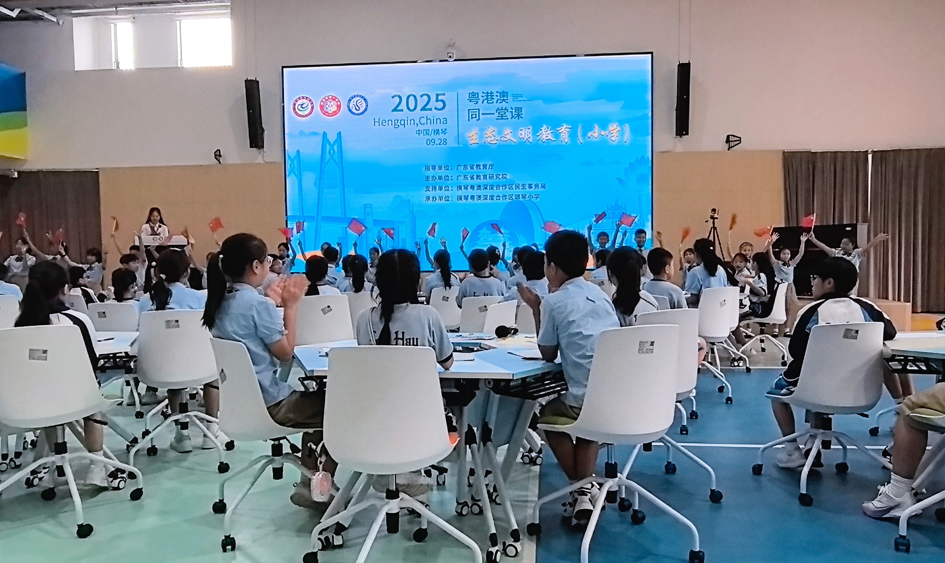 9月28日,在“绿水青山就是金山银山”理念提出20周年之际,为深入贯彻《粤港澳大湾区发展规划纲要》,深化对新时代粤港澳三地生态文明教育的认识与实践,由广东省教育厅指导、广东省教育研究院主办、横琴粤澳深度合作区民生事务局支持、横琴粤澳深度合作区颂琴小学(以下简称“横琴颂琴小学”)承办的“粤港澳同上一堂课·生态文明教育(小学)”交流活动在横琴举行。多地教育工作者齐聚一堂,现场观摩跨学科课例加杠杆最安全的证券公司,并围绕生态文明教育的实践路径展开深度研讨。