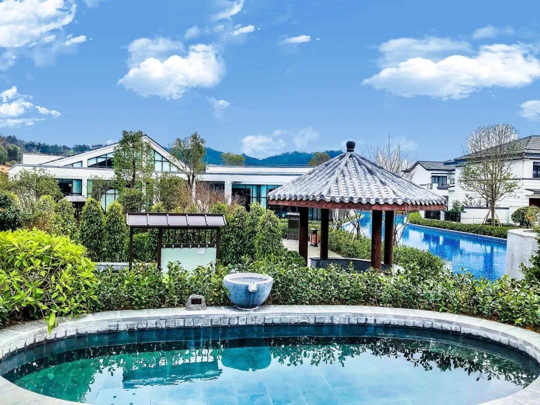 青砖黛瓦的别墅群在蓝天白云下格外雅致,28个露天泡池融入了当地独特的“硫磺泉&苏打泉”双资源!
