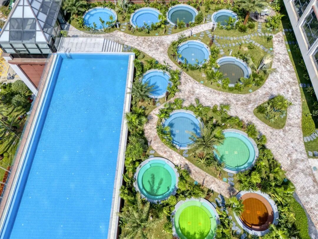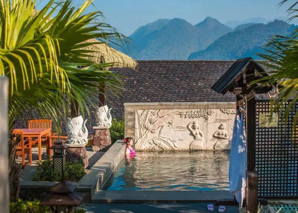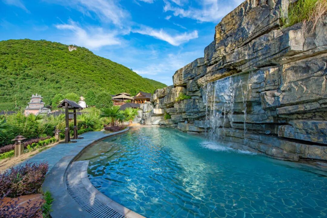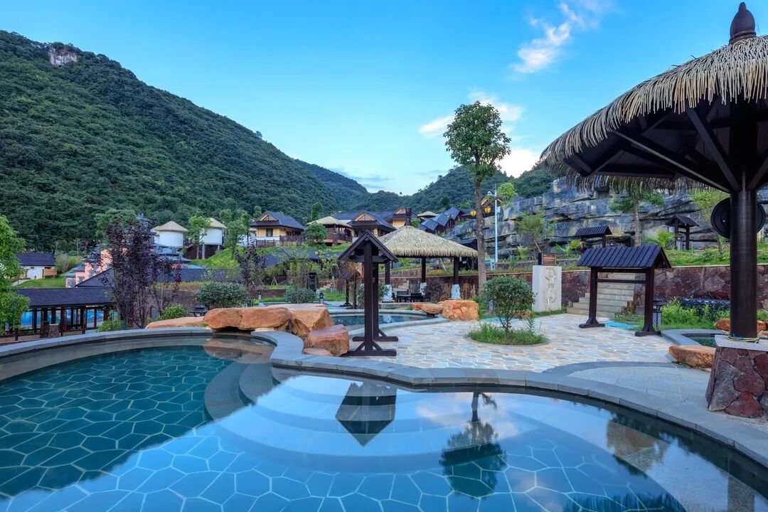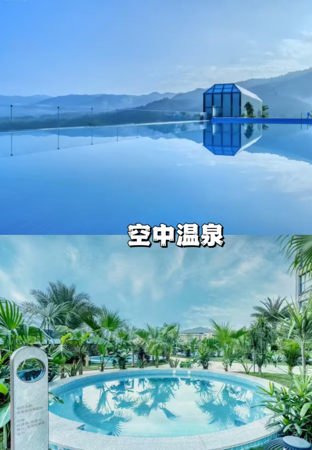 45个不同主题的温泉泡池错落分布,更有小黄果树瀑布、苏门答腊原生态水疗等特色体验,悬于云端的无边泳池将山水盛景尽收眼底。