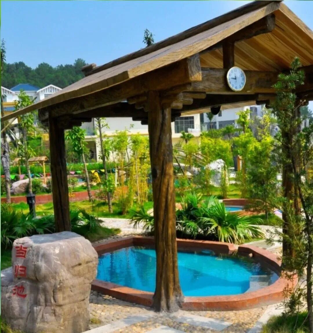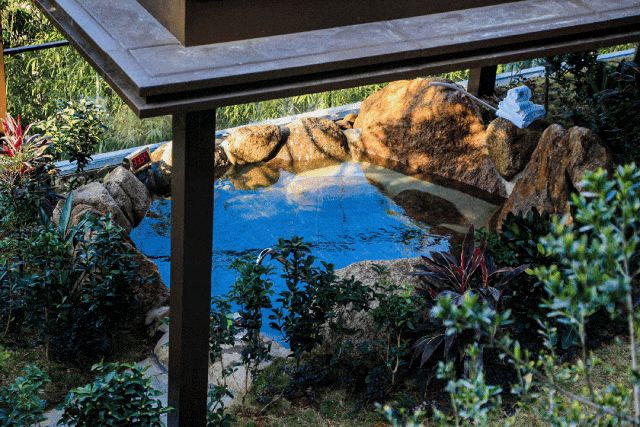 度假村采用露天园林式设计,75个形态各异的温泉池,如同珍珠般散落在静谧的园林中,其中尤以各类药浴池最具特色。