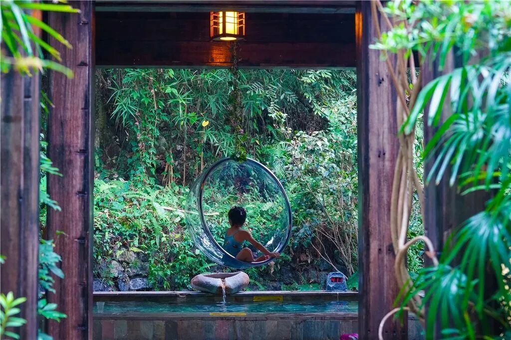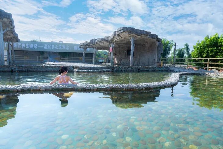 新春假期和家人一同泡在暖融融的汤池里,温泉池外是无边绿意,城市的喧嚣与疲惫在此烟消云散,让人仿佛置身于写意山水画中。