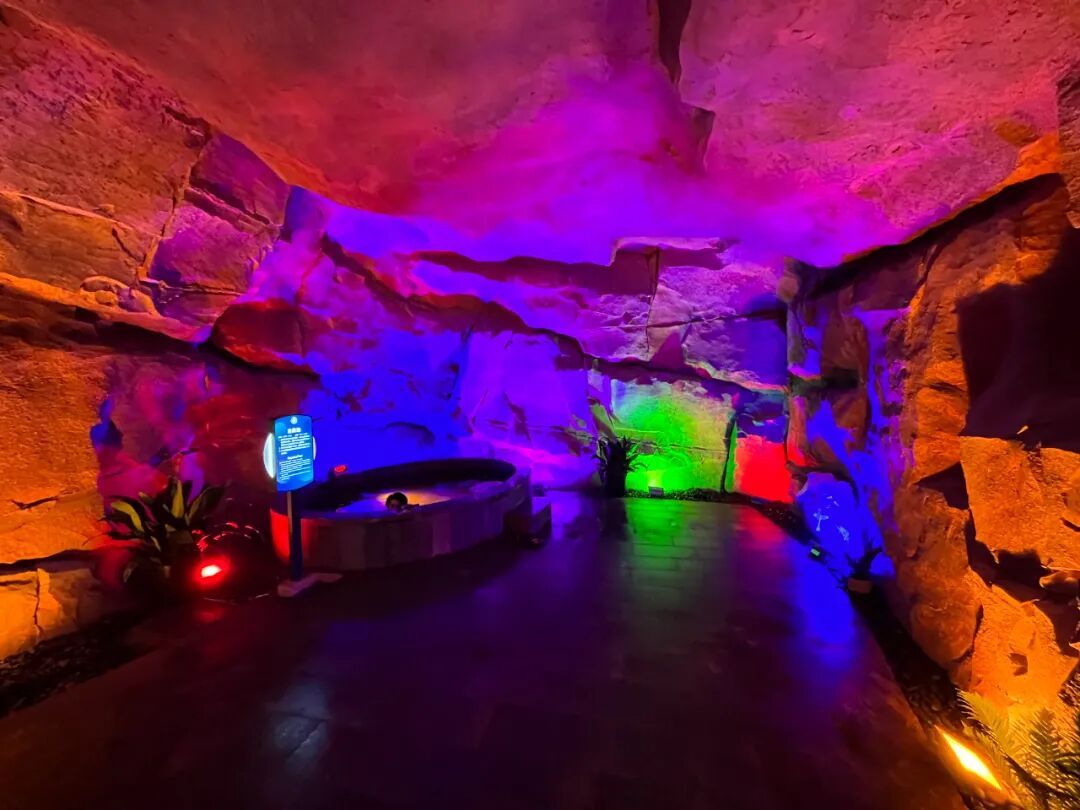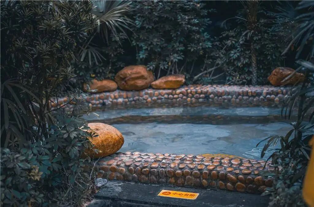 有40+露天园林温泉池,更有秘境般的溶洞温泉,在溶洞暖光下泛着幽光,浸泡其中,听水滴叮咚,别有一番与世隔绝的静谧。