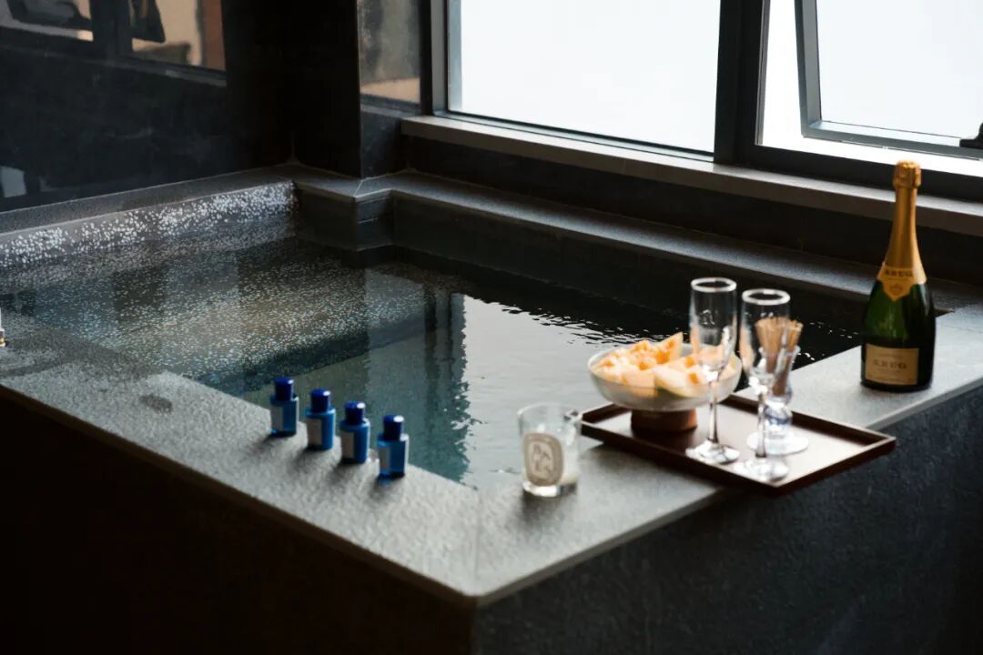 每间豪华客房都设有专属的私人温泉泡池,将绝对的宁静与放松留在房内。